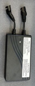 En la imagen podemos observar la sencillez y el poco espacio que ocupa nuestra batería recargable. También vemos sus dos sencillas salidas, una para cargarla y otra para conectarla al sofá.