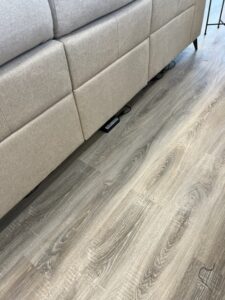 Aquí vemos lo fácil que resulta esconder la batería, una vez recargada, debajo del sofá. Aunque la batería dispone de un soporte que podemos atornillar al armazón y luego alojar la batería mediante presión, es mucho más sencillo colocarla completamente debajo del sofá.
