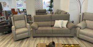 En la foto también aparece el sillón «MODELO ARIES» tapizado en Nuriel 10 Aquaclean presentado con relax eléctrico. Este sillón también se fabrica con relax manual, power lift con 1 motor y power lift con 2 motores. Además, se fabrica también en sofá 2 plazas,3 plazas y 4 plazas.