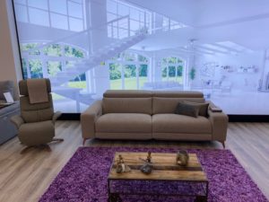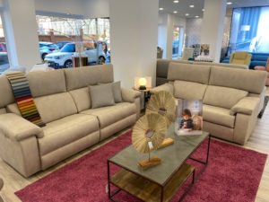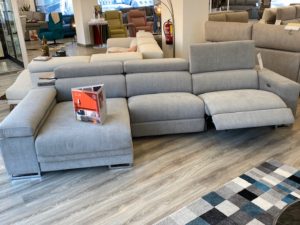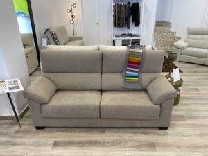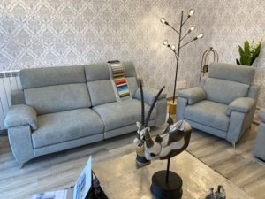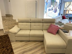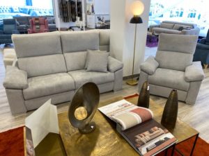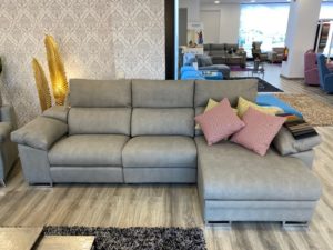 – Modelo Boom: El modelo Boom sigue siendo después de años el sofá de 82cm de fondo con relax eléctrico en los asientos más cómodos del mercado. Lo presentamos en medida de 216cm con dos relax eléctricos, su sillón de 84cm también con relax eléctrico y unas dos plazas de 176 con asientos deslizantes. Hemos tapizado los sofás con la tela Mozart light grey y el sillón con Mozart taupe. Destaca por su altura de respaldo y la comodidad que proporciona a las personas mayores. Sus asientos desenfundables rellenos con gomaespuma de 35kg de densidad y sus cabezales reclinables proporcionan un confort imbatible en los sofás de fondo reducido.
